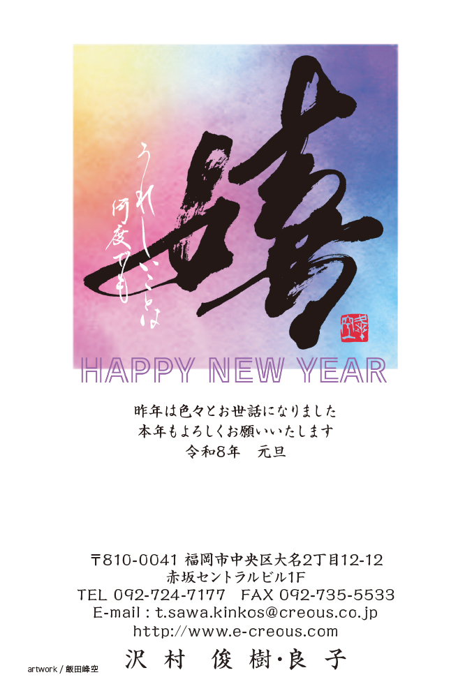 一方は「嬉」の文字をテーマに仕上げました。ささやかな幸せから大きな喜びまで、嬉しいことをたくさん味わえる一年になるように願いを込めてデザインしました。