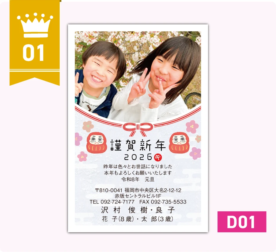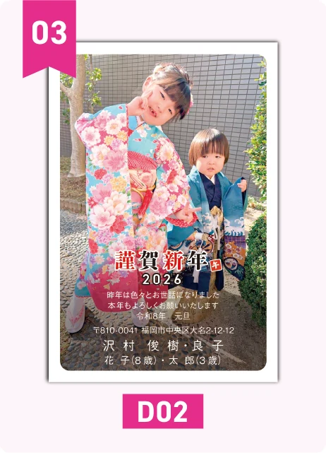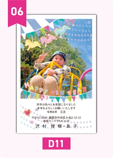 お子様の写真やペットの写真で!お気に入りの写真を年賀状に!